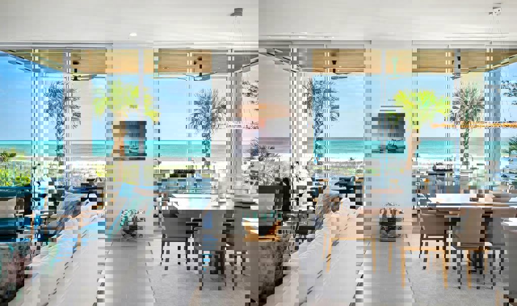This spectacular modern beach home is located on the coast of Anna Maria Island and had several openings to fill with doors. The goal when deciding on any doors is to find products that provide the strength and necessary security, are cohesive with the projects aesthetics, and maximize your view. Euro-Walls multi slide and pivot doors were a perfect fit, giving every room in the house an unbeatable view of Florida's Gulf Coast.