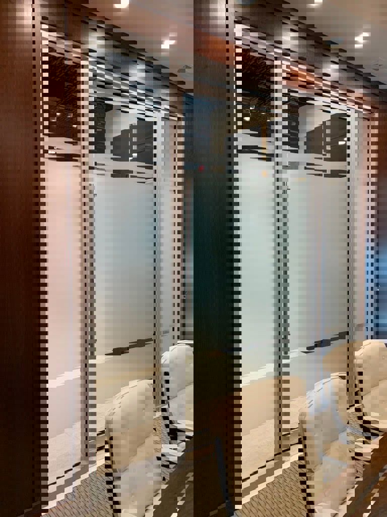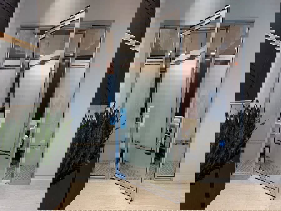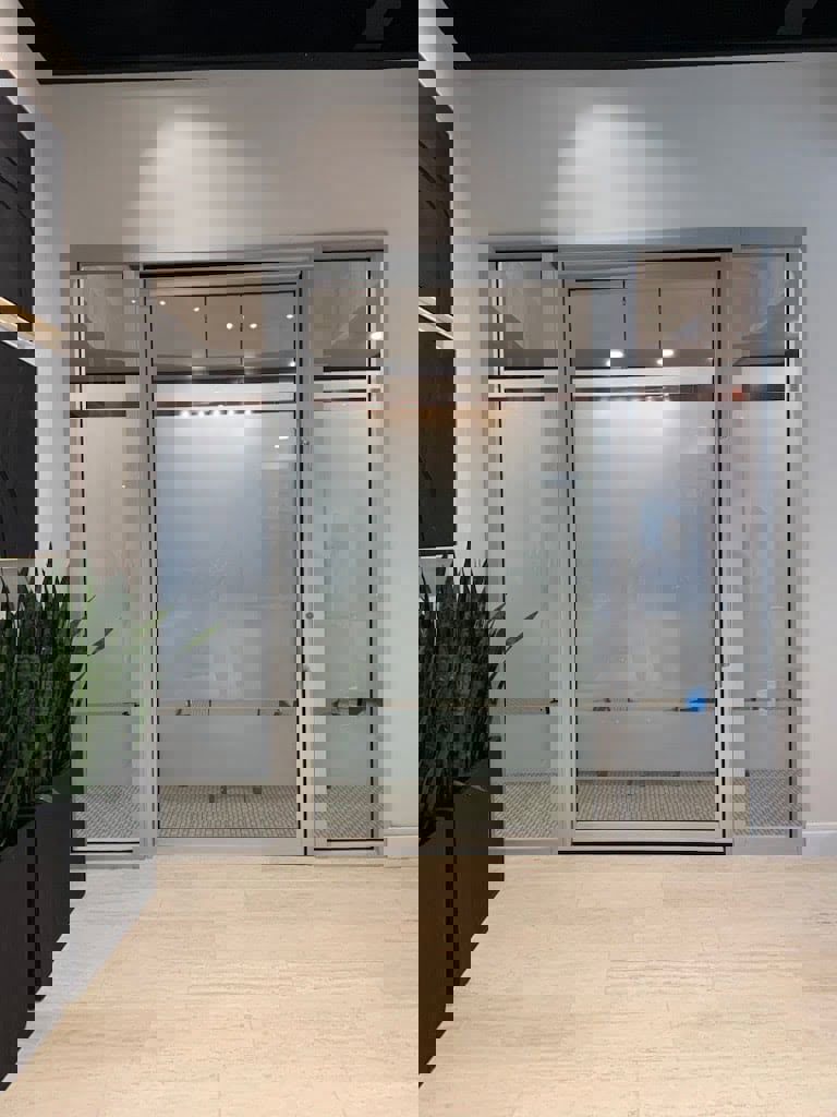 Euro-Wall’s pivot doors create grand entrances and flush transitions throughout any home, office, or commercial space, lending a cohesive aesthetic. They can be constructed to a max height of 14′ and width of 100″, providing solutions for non-traditional breathtaking openings. All configurations are available in aluminum, interior wood clad, or an interior/exterior faux wood grain kynar finish. To learn more about how Euro-Wall’s pivot doors can augment your next project, visit our product page.
